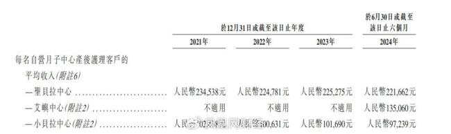 “月子中心爱马仕”名不虚传,价格的确是贵。根据招股书,圣贝拉中心的“每名自营月子中心产后护理客户的平均收入”,从2021年到2024年上半年,一直维持在22万元上下。