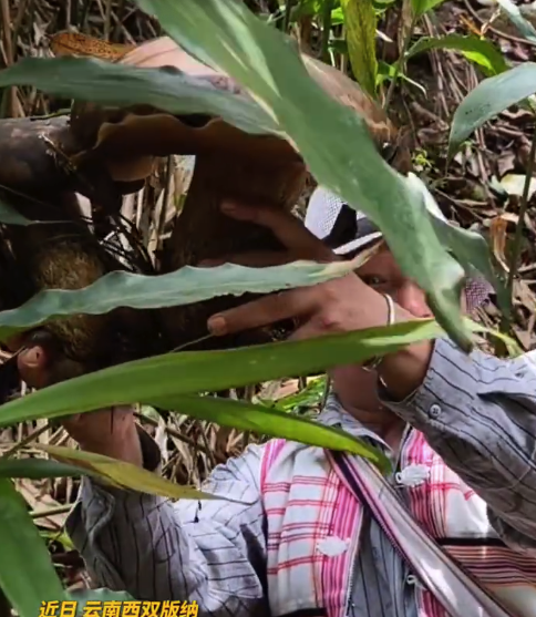 近日,云南西双版纳,男子徒步时捡到巨型菌子,激动到破音!