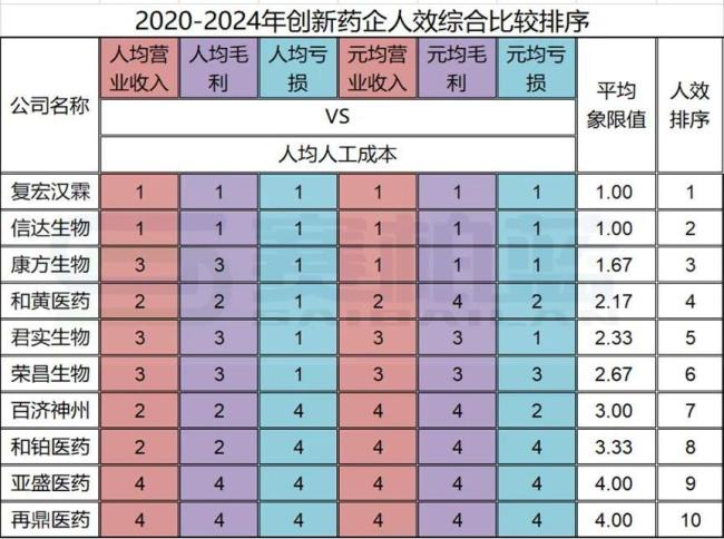 十大创新药企盈利能力(人效数据)PK:百济、信达、君实、康方...