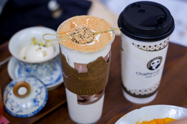 茶百道产品负责人介绍,为了传递川茶川味的根源生命力,茶百道聚焦巴蜀匠人精神、溯源在地手作原料,还精心打造了旗舰店菜单中的飘雪(川韵·九窨茉莉)、墨染清风(川藏·茯砖黑茶)等产品,以极具四川特色的手作饮品向八方游客展现川茶本味。