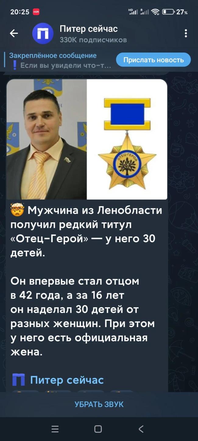 俄罗斯列宁格勒州一男子荣获稀有的“英雄父亲”称号。他有30个孩子。他42岁第一次成为父亲,之后的16年间,他与不同的女人生了30个孩子。这期间他有合法的妻子。