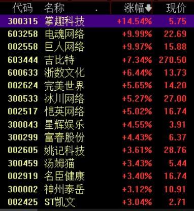 6月3日,游戏板块早盘强势拉升,巨人网络、电魂网络涨停,掌趣科技涨超14%,浙数文化、完美世界、吉比特等跟涨。