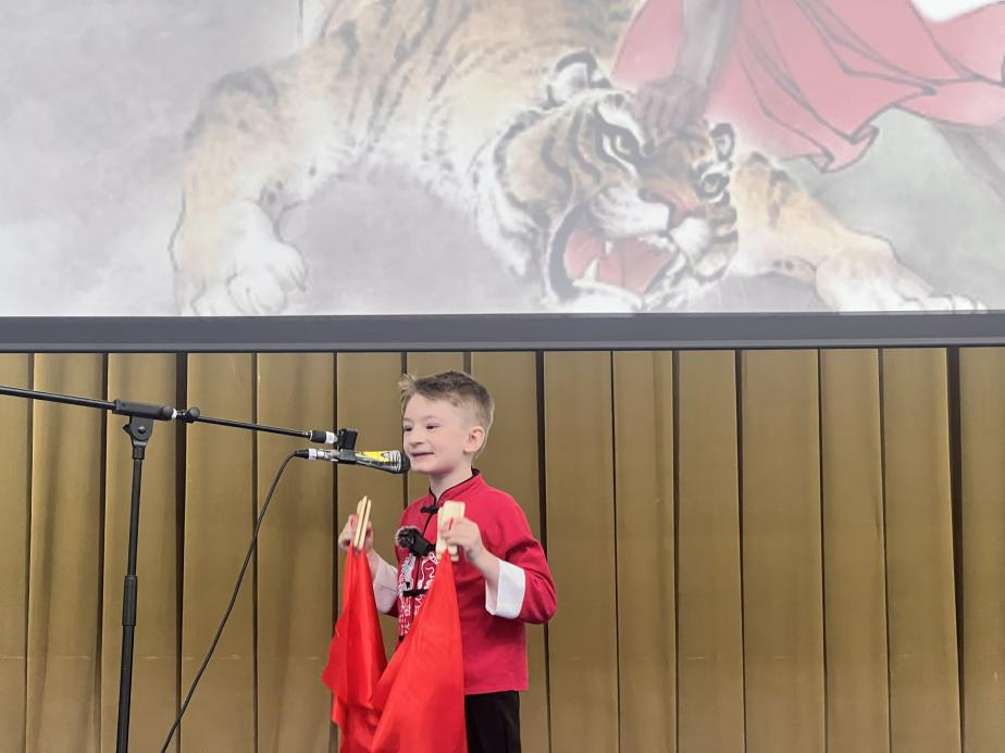 一航表演快板《武松打虎》。布加勒斯特大学孔子学院供图