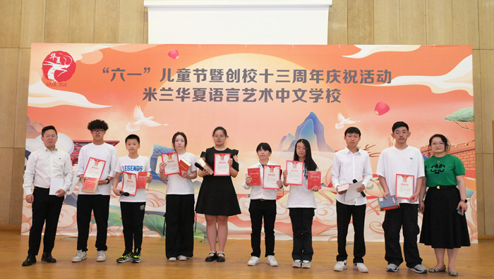 人民网罗马6月3日电 (记者谢亚宏)当地时间6月1日,米兰华夏语言艺术中文学校在米兰省府礼堂举行庆祝活动,庆祝“六一”国际儿童节暨创校十三周年。中国驻米兰总领馆领事任武、米兰市第七区副主席西乌尔巴、ITIS Ettore Conti 高中副校长科斯坦蒂诺、意大利中文学校联合总会会长、米兰华侨中文学校校长陈小微、米兰华侨华人工商会会长黄国权,以及米兰部分侨团代表、师生和学生家长近700人出席活动。