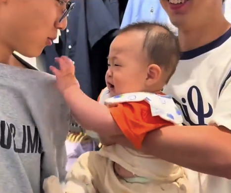 宝宝撒娇要舅舅抱,舅舅抱上后一秒变脸,网友:舅舅也是专业人士了,还没接过手就开始哄。