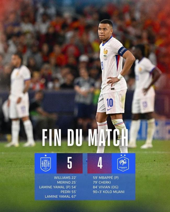 欧国联半决赛亚马尔梅开二度 西班牙5-4险胜法国