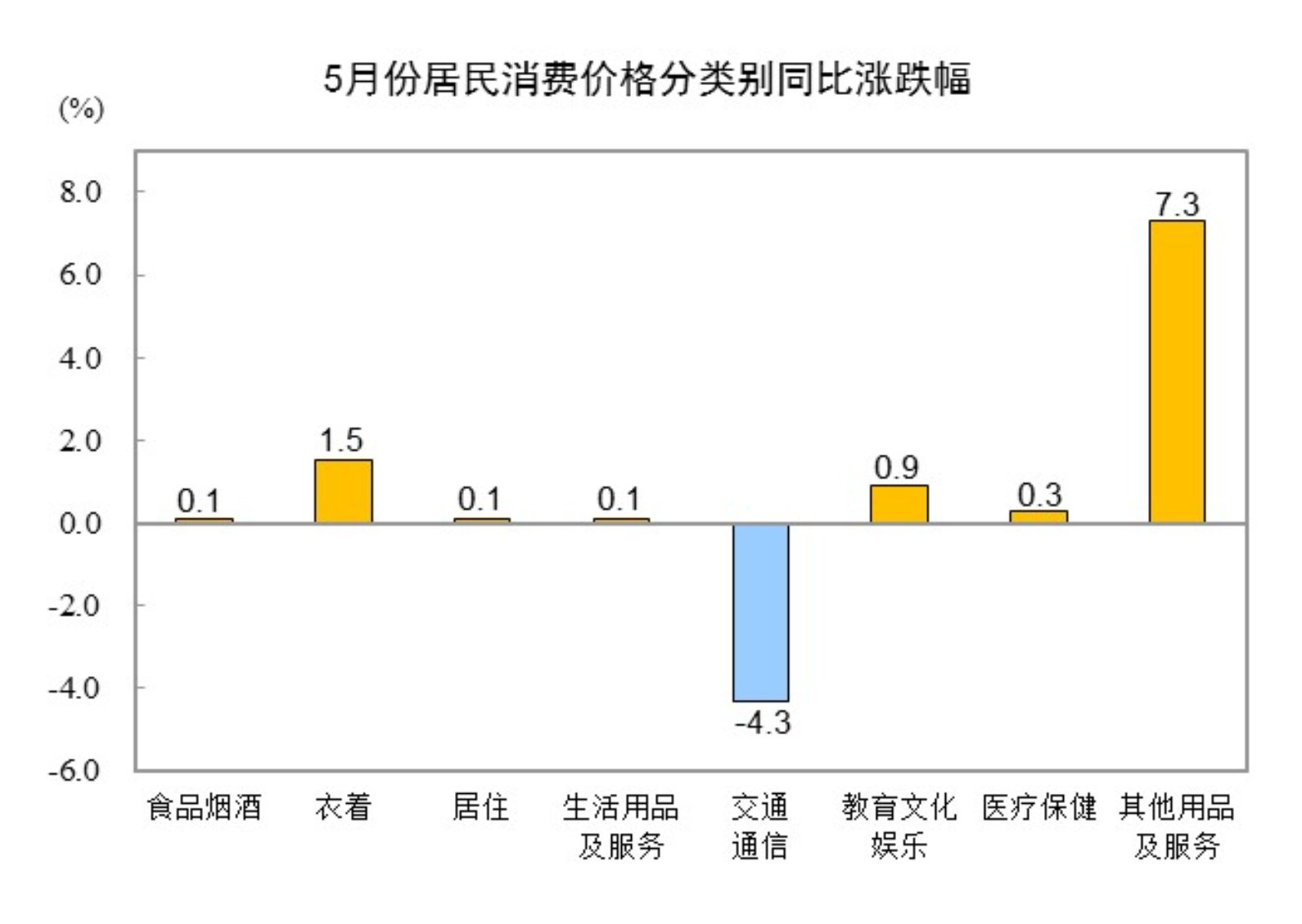 国家统计局:2025年5月份居民消费价格同比下降0.1%