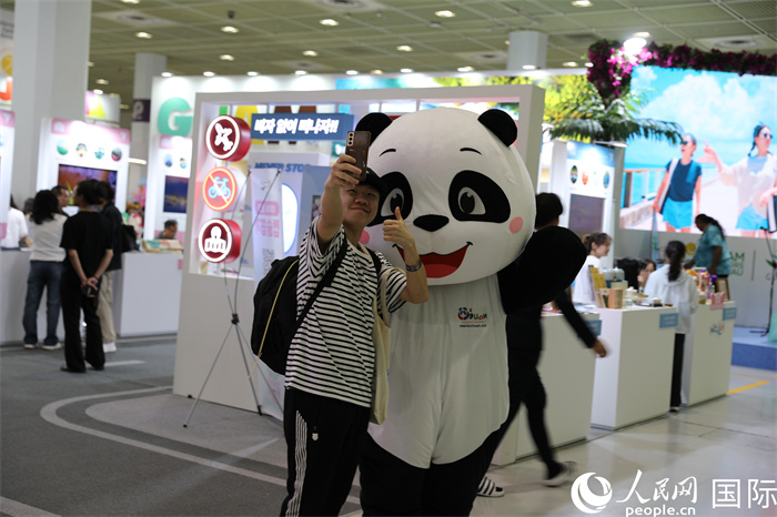 展区现场不仅精心安排了茶艺展示、古琴演奏、传统杂技等特色演出,面塑、刺绣、民歌等精彩非遗展示,还策划了青岛啤酒挑战赛等互动体验活动,观众可体验拍照打卡,品尝中国人气零食,并与可爱的“熊猫人”合影互动。