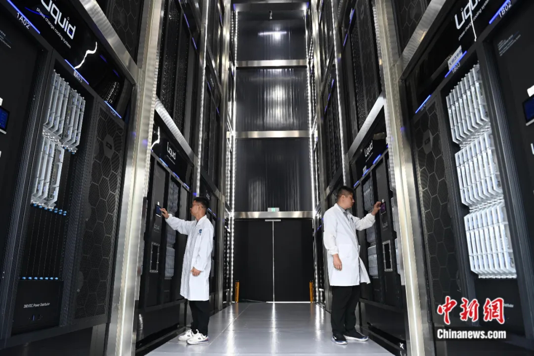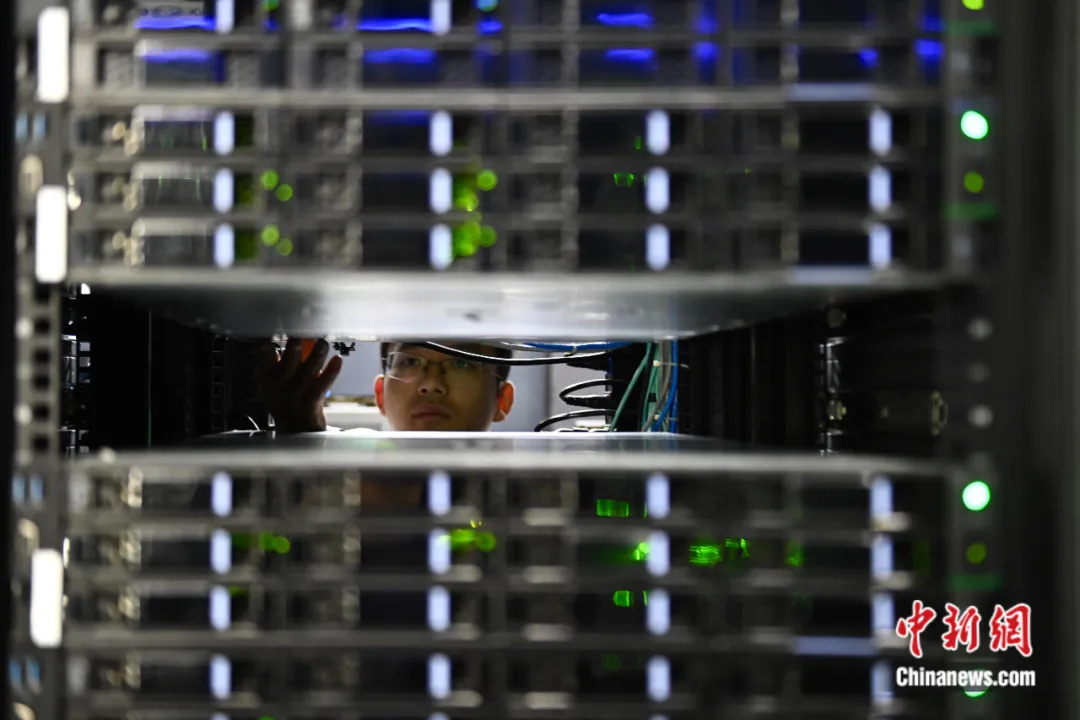 合肥先进计算中心,工作人员在“巢湖明月”机房内检查设备。中新社记者 韩苏原 摄