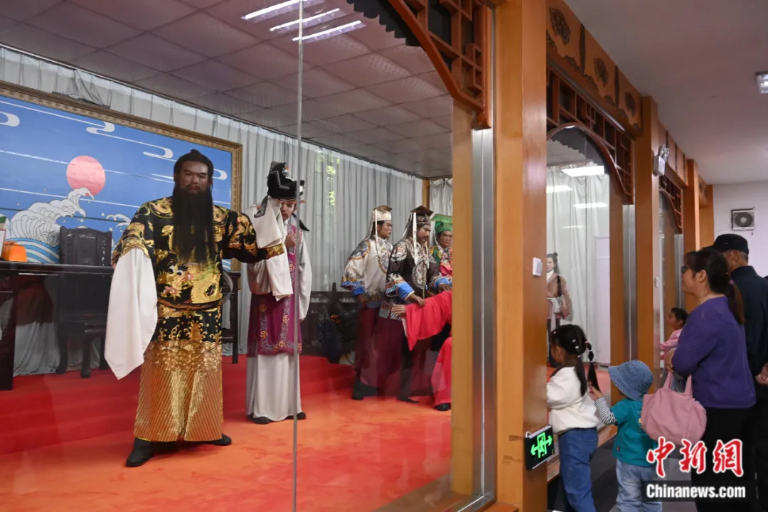 在合肥包公园景区,市民在包公蜡像馆内游览。中新社记者 韩苏原 摄