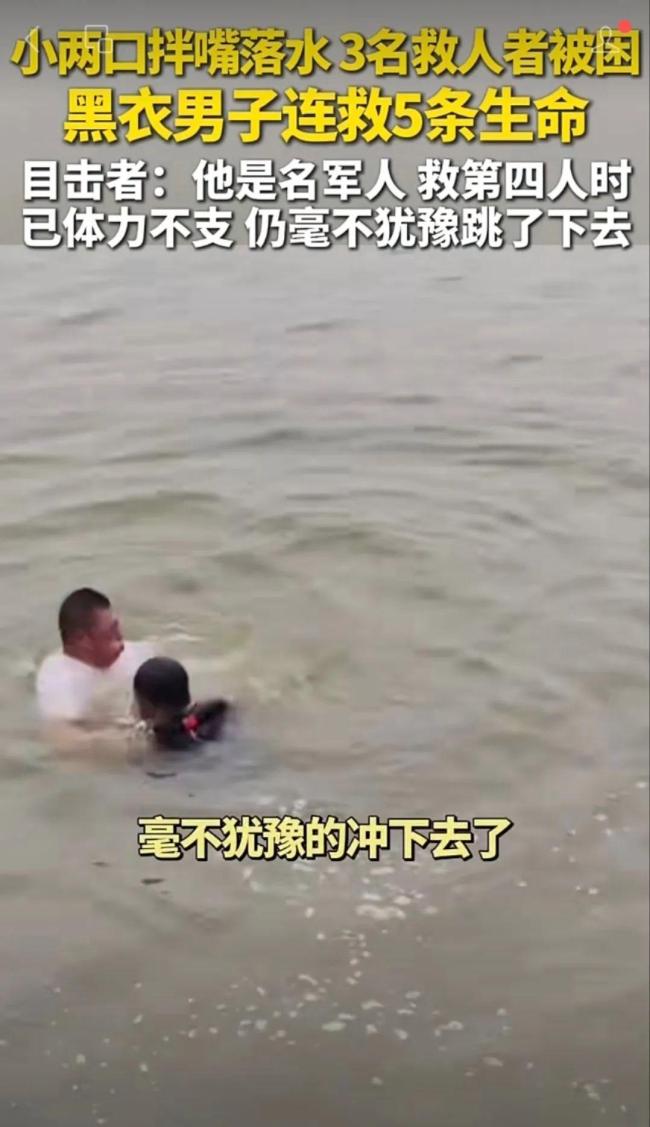 6月6日,河南商丘一对小夫妻在争吵中不慎落水。三名男子跳湖救人却被困深水区。一名路过穿黑衣的男子连续救起五人后陷入昏迷,被120急救车送往医院。这名英勇救人的男子是陆军某部少校军官张伟。