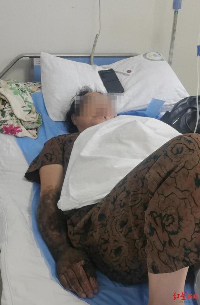 6月9日上午,被蛇咬伤的庞女士经过注射抗蛇毒血清等治疗后,情况较为稳定。她回忆说,一天前,家中出现了一条烙铁头蛇,因担心1岁多的孙子安全,她在打蛇时不慎被咬伤。