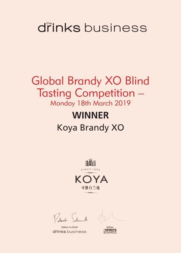 时间再往前,2019年3月,在全球权威媒体《Drinks Business》举办的“全球XO盲品赛”中,可雅桶藏15年XO就以93.8分的成绩在包括人头马、轩尼诗、马爹利等一众国际知名品牌中脱颖而出,拿下冠军,以“全球XO盲品冠军”之名在全球白兰地版图刻下中国的坐标。