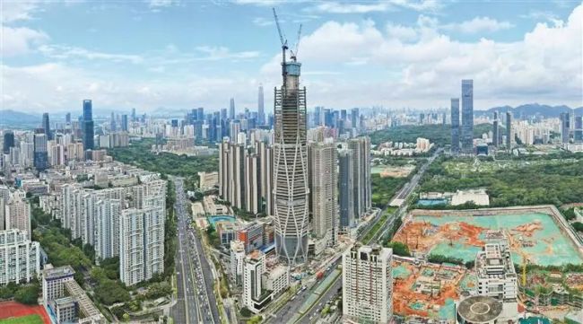 深圳新地标核心筒高358米 福田湾区智慧广场封顶。福田湾区智慧广场项目核心筒已封顶,建设正稳步推进,预计2027年建成。该项目设计突破了传统超高层建筑的刻板形象,以“自然生长”为母题,将结构力学与建筑美学完美融合,创造出独具深圳特色的城市地标。塔楼平面呈独特的六边形莲花瓣造型,从地面至天空呈现出富有弹性及生命力的自然生长之势。12根蜿蜒攀升的巨柱构成核心筒支撑体系,既满足超高层结构力学需求,又以“钢构之花”的意象呼应深圳“敢为人先”的城市精神。项目位于深圳中心公园东侧,包含一栋人才公寓及一栋超高层办公楼,总建筑面积约24.08万平方米。超高层办公楼高358.1米,地上65层,地下4层,建成后将优化城区资源配置,大幅提升片区产业能级。