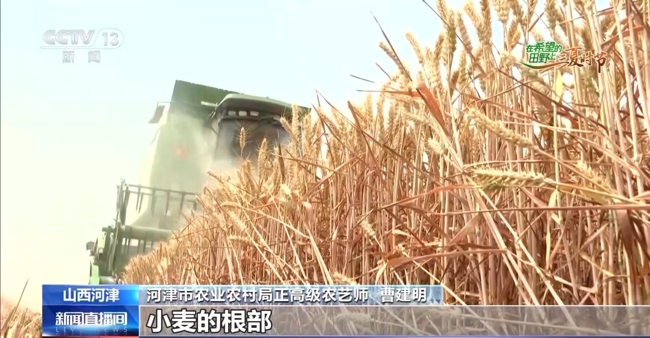 这段时间,在山西河津市的黄汾10万亩粮食优质高产高效示范基地,金黄的麦浪随风翻滚,新技术、新农机的应用让这个夏收季“科技范”满满。