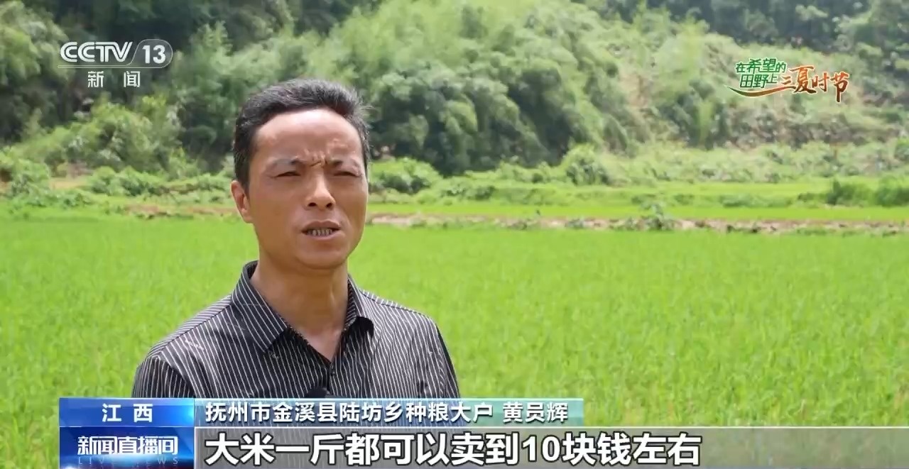 抚州市金溪县陆坊乡种粮大户 黄员辉:消费者全程可以通过追溯系统查看,这样种出来的水稻品质高,大米一斤都可以卖到10块钱左右,不愁卖。