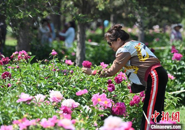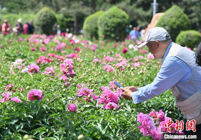 6月11日,在长春市长春公园内,六万余株芍药花竞相绽放,吸引了众多游客前来观赏。中新社记者 张瑶 摄