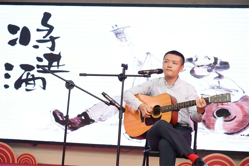 吉他弹唱《将进酒》。尼日利亚中国文化中心供图