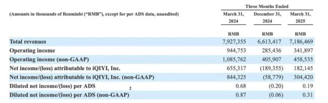 目前,这家流媒体巨头正经历盈利承压的关键转型期:5月21日美股盘前,爱奇艺(NASDAQ:IQ)发布的财报显示,报告期内,爱奇艺营收从去年同期的79.3亿元降至71.9亿元,同比下滑9.35%;非美国通用会计准则(Non-GAAP)经营利润4.6亿元,低于去年同期的10.9亿元。