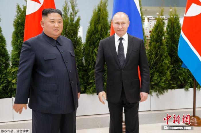 资料图:当地时间2019年4月25日,朝鲜最高领导人金正恩和俄罗斯总统普京,在俄远东联邦大学会晤。