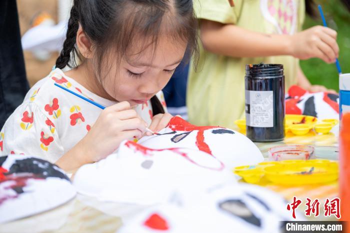 图为小朋友在画戏曲脸谱。黄数情 摄