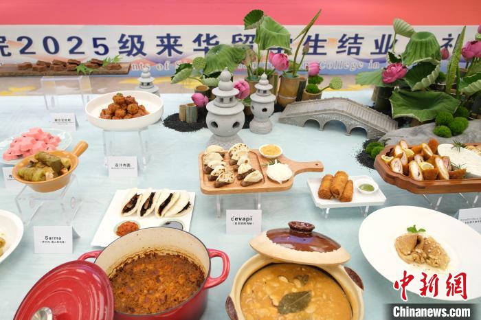 据他介绍,今年项目的亮点在于推出了融合菜系。他指着现场展台上的菜品说:“塞尔维亚炭烤小肉肠与杭州荷叶夹饼的创新融合、用杭州油面筋改良的塞尔维亚酸菜卷肉等,每一道都是两国青年学生味觉碰撞的全新尝试。”