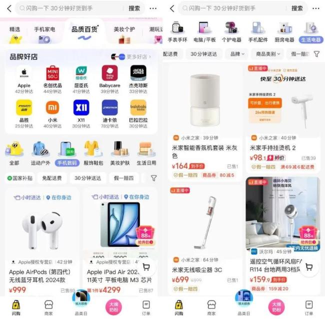 与此前不同的是,闪购业务新增了手机家电、品质百货、美妆个护等传统货架电商的品类,同时高调参与今年6.18大促,从外卖市场反攻零售业。据美团官方战报显示,5月28日0点至24点,美团闪购成交额同比增长2倍,近800个零售品牌闪购成交额同比增长1倍,美团闪电仓成交额同比增长近3倍。