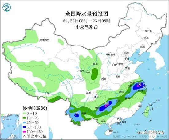 6月21日至22日,贵州到长江中下游一带的强降雨仍将持续,部分地区将有暴雨或大暴雨,局地特大暴雨。今天迎来夏至节气,南北方多地气温居高不下,特别是华北一带将迎来持续5至6天的高温天气,公众需做好防暑降温措施。