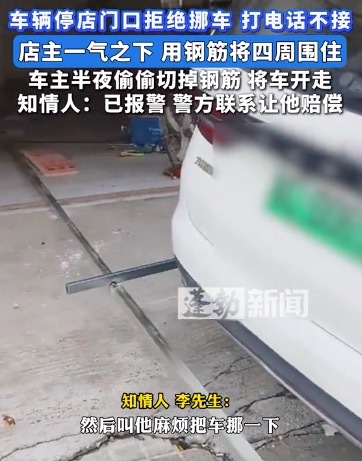 车辆停在店门口拒绝挪车,称“等他有空再说”!报警后,警察的电话他也不接,店主一气之下,用钢筋将四周焊住。