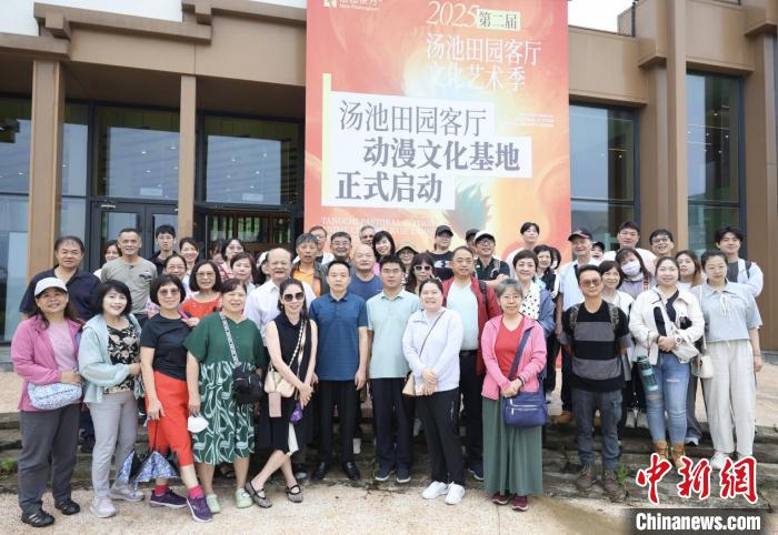 6月22日,台胞在庐江县汤池田园客厅前合影。江婉琪 摄