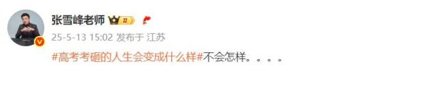 此前,在回应热搜话题“高考考砸的人生会变成什么样”时,张雪峰曾发文表示:不会怎样。