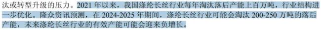 我们再来看看供给端。2021年以来,我国涤纶长丝行业每年淘汰落后产能上百万吨,行业供给结构进一步优化。2024-2025年,涤纶长丝行业可能会淘汰200-250万吨落后产能,未来行业的有效产能可能会迎来负增长。
