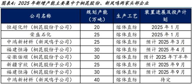 现阶段国内拟在建涤纶长丝产能约为225万吨,其中2025年规划投产185万吨,相较于行业产能投放高峰期已经明显下行,且从企业端来看新增产能主要集中于桐昆股份和新凤鸣两家。如今,行业扩产进入尾声,新增产能有限且集中于头部企业。