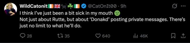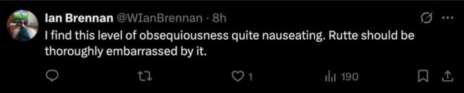 这条短信很快在社交平台X上引发了争议。有网友表示,他们感到反胃,不仅因为吕特的奉承,还因为特朗普公开私人短信的行为毫无底线。另一些网友认为这种过分的谄媚行为令人反感,吕特应该为此感到尴尬。还有人评论说,拍马屁似乎是让特朗普按意愿行事的最佳方式。