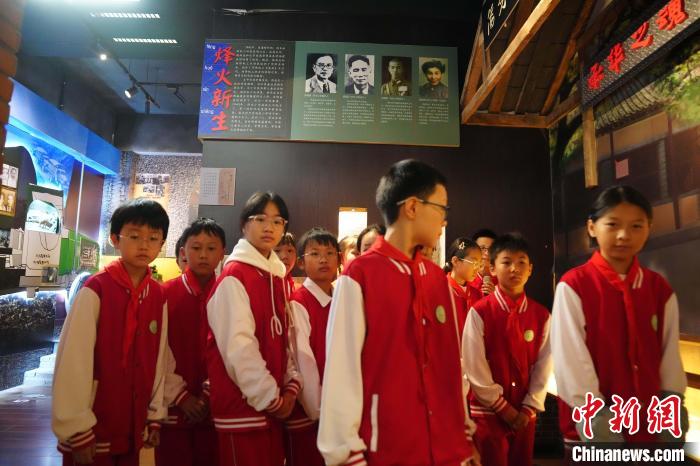 图为6月23日,侨光小学的学生讲解员在校史馆向低年级同学讲述南侨机工历史。中新社记者 刘冉阳 摄