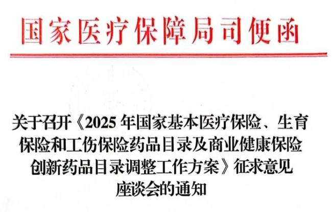 6月16日,国家医保局医药管理司召开了一场座谈会,会上讨论了《2025年国家基本医疗保险、生育保险和工伤保险药品目录及商业健康保险创新药品目录调整工作方案(征求意见稿)》)。