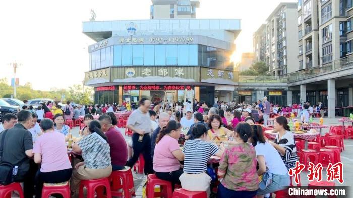 图为游客在永修虾客天下美食街品尝龙虾。永修县融媒体中心供图