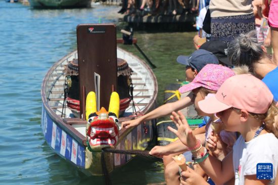 6月29日,在瑞士埃格利绍,瑞士苏黎世州华侨华人组织的“龙战队”参加龙舟赛。新华社记者 王其冰 摄