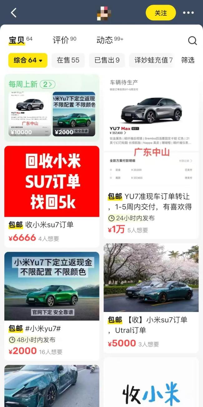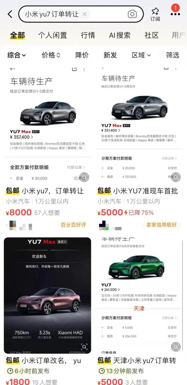 实际上,在小米YU7正式上市前,还出现了代抢服务。“YU7今晚上市发布,千人团队,提供代抢服务,第一时间提车,日租金5000元,专业事交给专业人办。”一个黄牛此前在某二手交易平台上发帖。在其主页的其他帖子中,还在转卖/收YU7、SU7的订单。