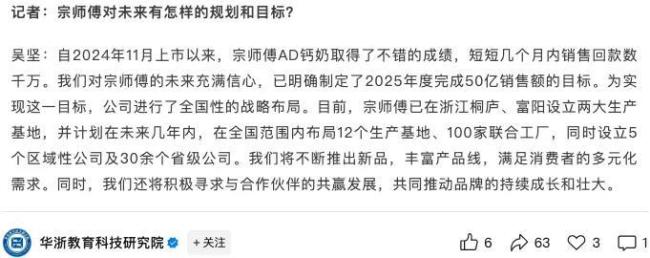 从产品层面来看,去年底,宗师傅(杭州)推出AD钙奶,由浙江吾尚食品代工生产,并高调亮相全国糖酒会。根据“杭州宗师傅”的消息,目前该公司的产品已经涵盖AD钙奶、冰红(绿)茶、瓶装水、茶饮料、八宝粥、苏打水等多个品类。