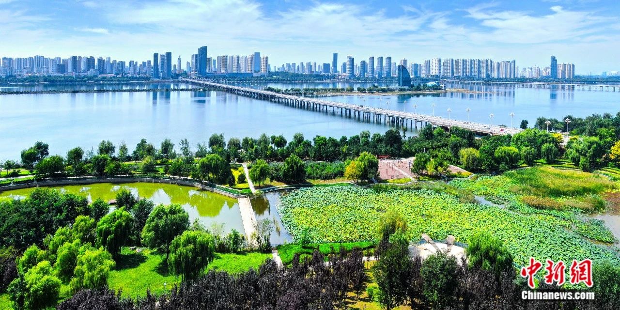 聊城东昌湖与城市相融。山东省文化和旅游厅供图。
