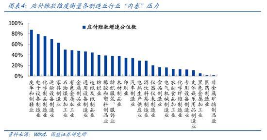 从宏观角度看,内卷压力大的行业通常供大于求,导致产能利用率低,企业被迫开展价格战,利润缩水,同时企业会尽可能拖欠上下游企业的货款,导致应付账款增加。具体来看,非金属矿物、专用设备、电气机械、医药等行业的产能利用率较低,可能与地产景气下行、实物工作量持续低位及各地过度投资等因素有关。食品饮料、汽车、专用设备、仪器仪表、通用设备、医药等行业的PPI增速较低,可能与近年来医药集采、汽车行业价格战等因素有关。烟草、家具、文体娱乐用品、食品饮料、纺织服装等行业的利润增速较低,可能与消费持续低迷、需求不足有关。皮革和制鞋业、电子设备、化学制品、运输设备、家具等行业的应付账款增速较高,这与相关行业的竞争压力大、挤占上下游货款有关。