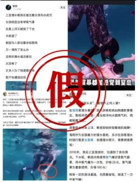 潜水教练反复把女孩压水底?假的 网传视频与三亚无关