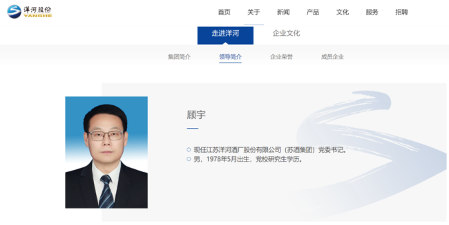 洋河股份未在公告中披露继任者,不过洋河股份官网后续显示,根据中共宿迁市委文件精神,顾宇任洋河股份(苏酒集团)党委书记,张联东不再担任洋河股份(苏酒集团)党委书记职务。