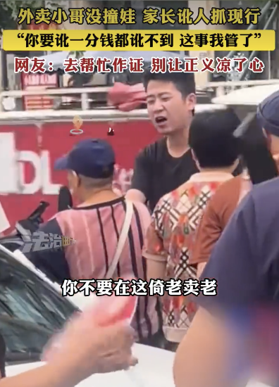 外卖小哥没撞娃 家长讹人被抓现行。外卖小哥没撞娃 家长讹人抓现行 “你要讹一分钱都讹不到 这事我管了” 网友:去帮忙作证 别让正义凉了心。