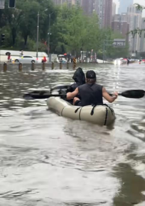 7月3日,成都遭遇暴雨,多条道路出现积水。一位成都市民在路上划船的视频迅速走红,有网友笑称这是成都人的松弛感。