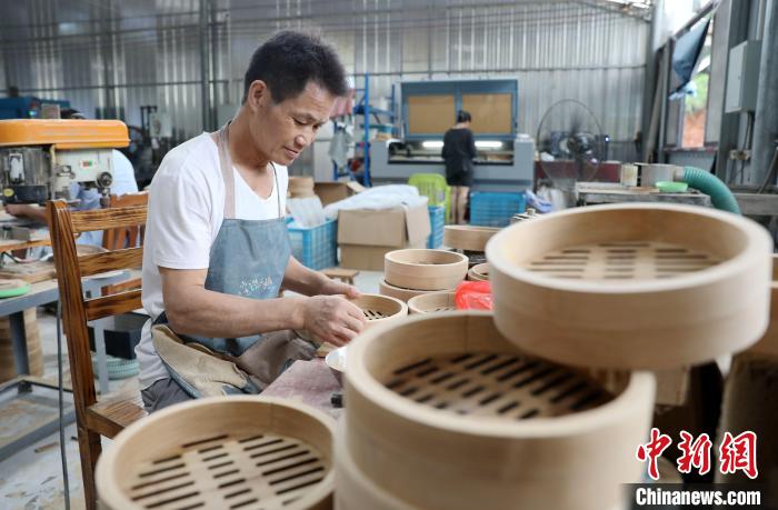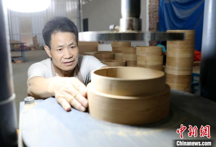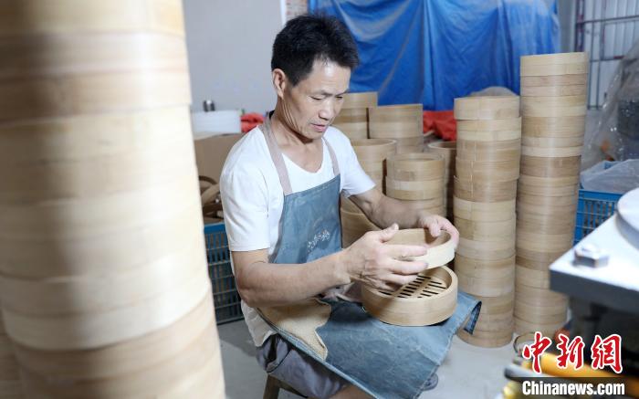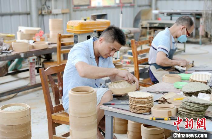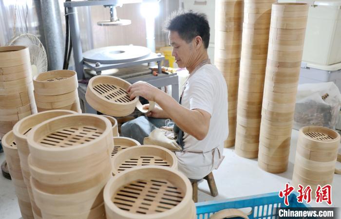 图为工人在赶制竹制蒸笼订单。龚普康 摄