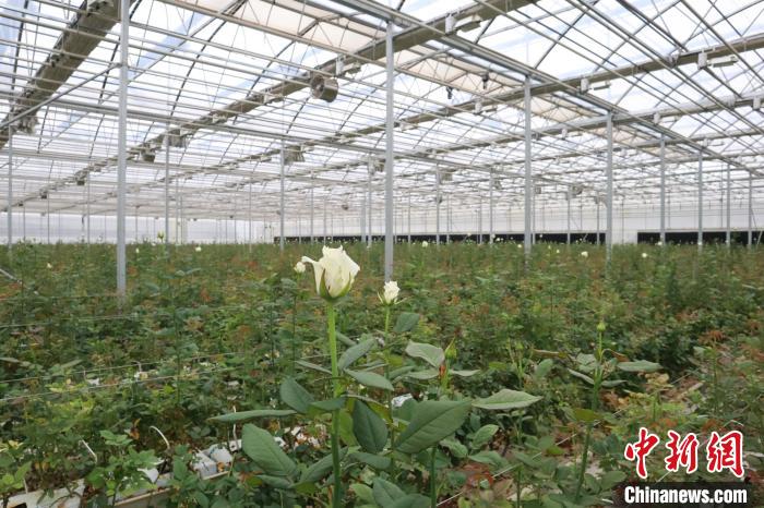 图为杨凌智慧农业示范园内中东温室,白玫瑰盛放。中新社记者 李一璠 摄