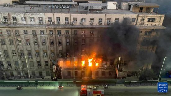 7月7日,消防人员在埃及首都开罗一座电信大楼的火灾现场工作。新华社发(伊斯梅尔·戈马摄)