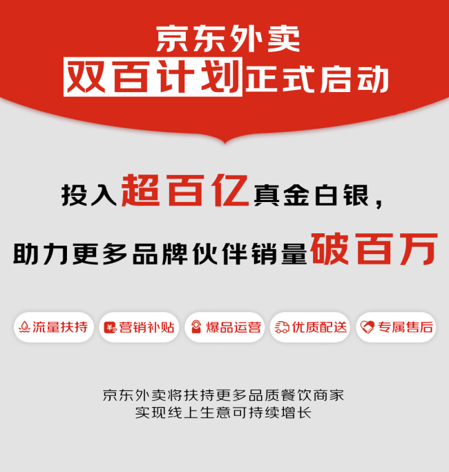 京东外卖上线4个月近200个餐饮品牌销量破百万,推出“双百计划”投入超百亿扶持品质商家